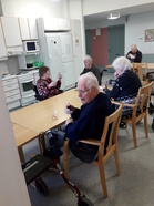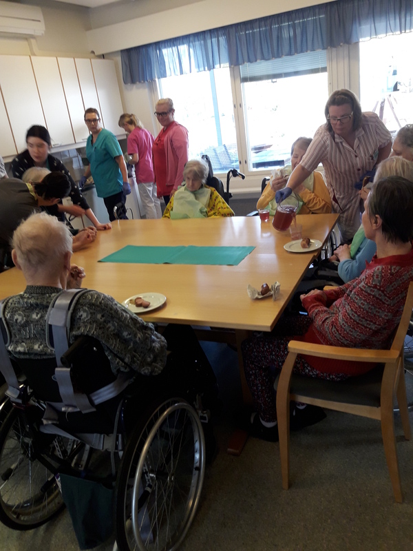 Jälkiruokana joimme lettipullan kera kahvit. Hyvin tyytyväisiltä asukkaat tuntuivat tapahtumaan, ja jo suunniteltiin että eiköhän vielä paisteta lettuja näin syksyn kynnyksellä.