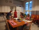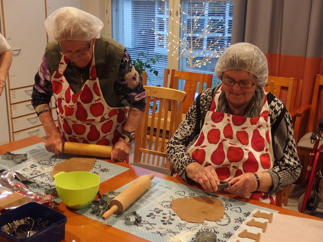 Talonväki osallistuu niin piparien tekoon kuin paistamiseen opiskelija Essin ohjauksessa. Siinä syntyvät niin sydämet kuin oravat, muotteja on moneen makuun. Kyllä tuo joulupiparin tuoksu kuuluu vaan jouluun, tässä alkaa jokaisen suu taipua hymyyn ihan vain tästä ihanasta tuoksusta.